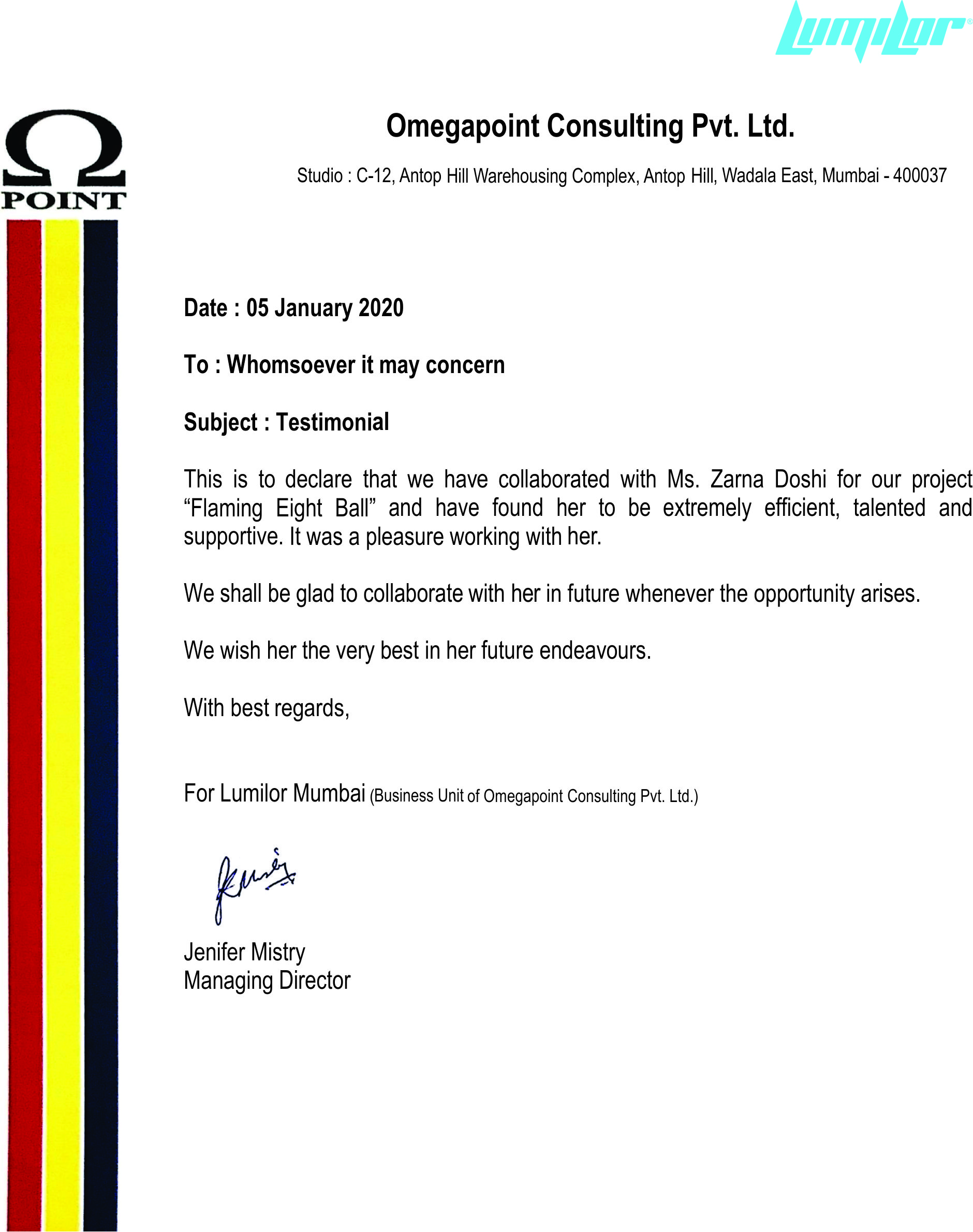 It has been wonderful working with you, your innovative ideas are truly appreciated by clients.